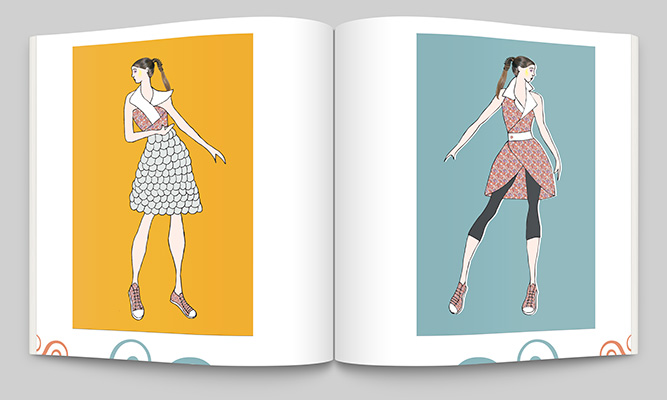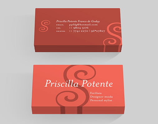 Projeto gráfico para book de coleção da estilista Priscila Potente e cartões de visita.