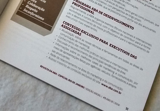 Revista para Associação Brasileira de Anunciantes, edição anual para o Rio de Janeiro.