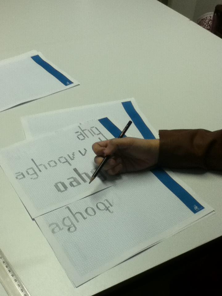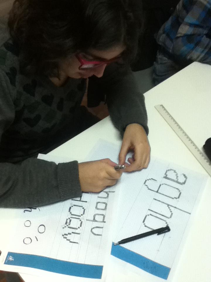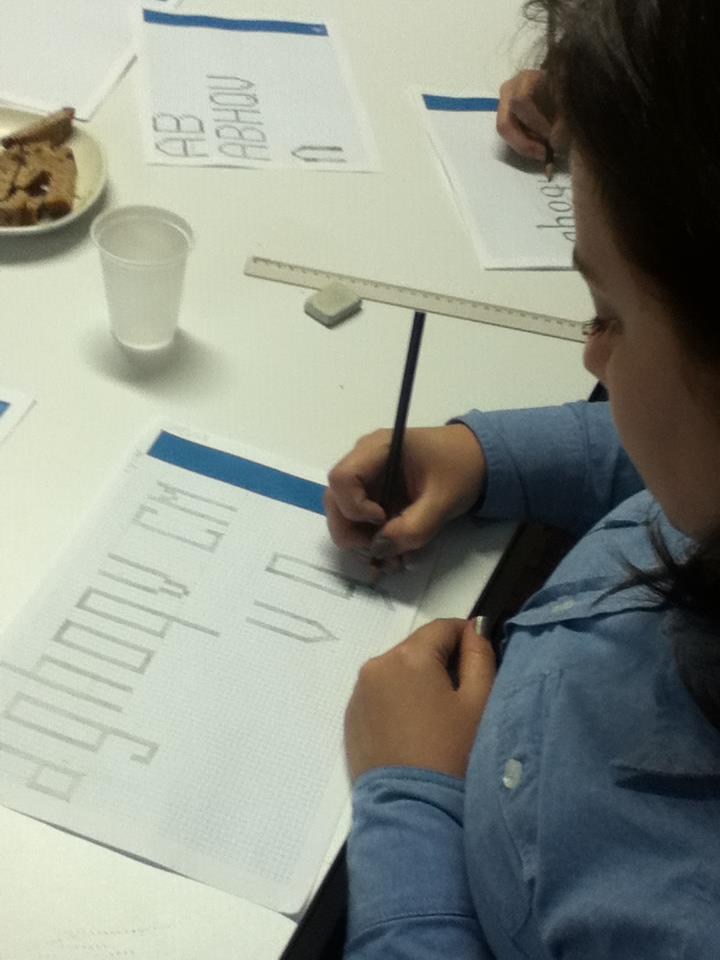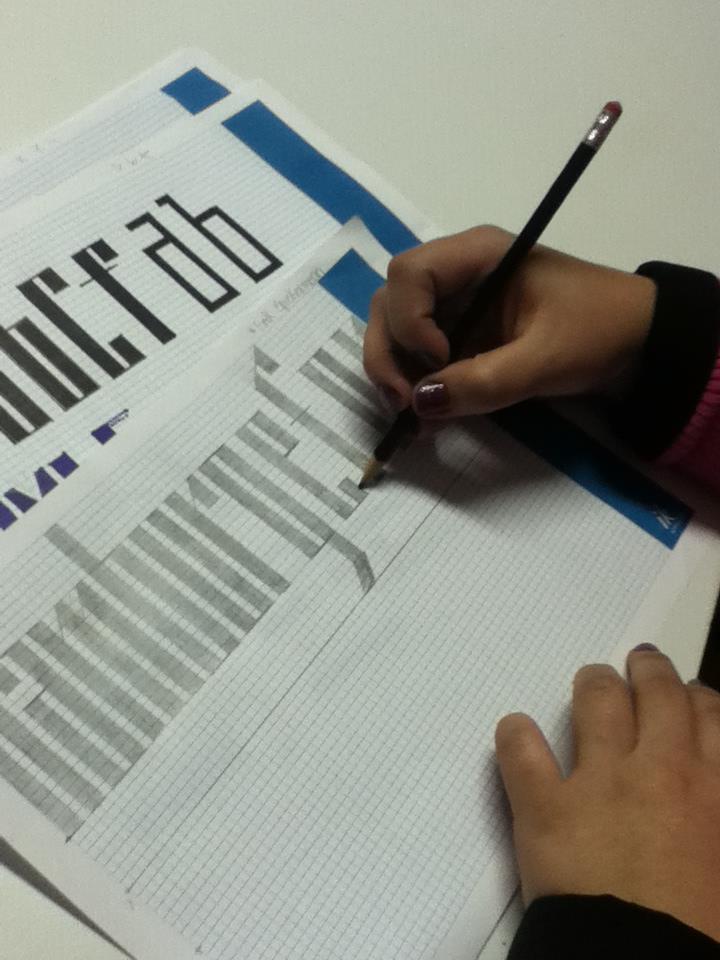 O curso abordou conceitos básicos da tipografia, como métrica, estrutura das maiúsculas e minúsculas e proporções de caracteres, a partir de exploração de grid modular.